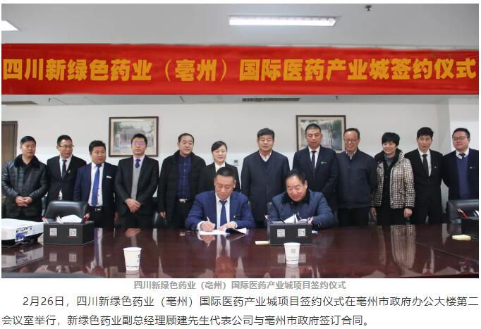 四川新绿色药业(亳州)国际医药产业城项目签约仪式于安徽亳州圆满举行